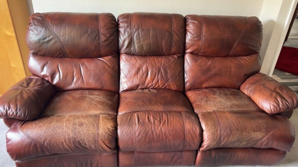Firstly the sofa is cleaned. This is done using leather cleaner and a lint free cloth.