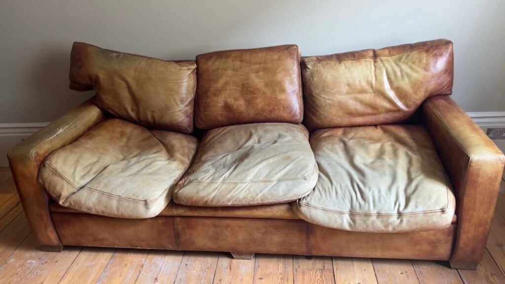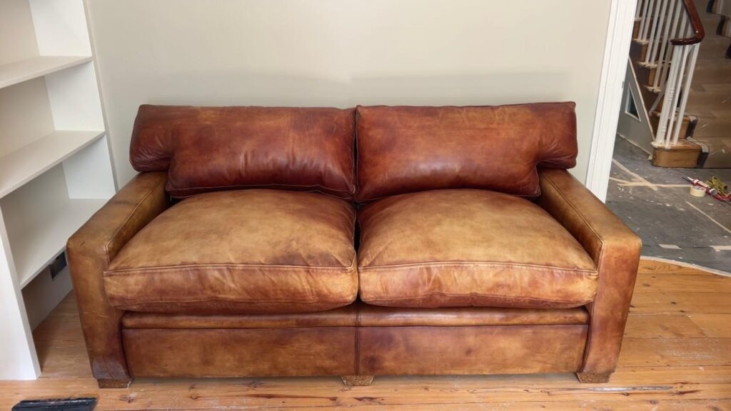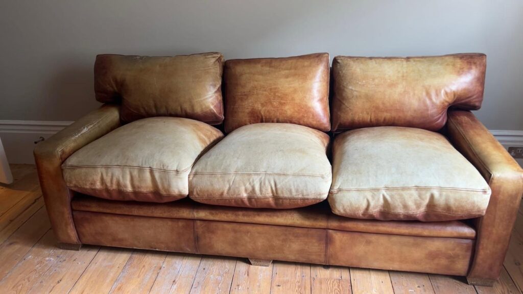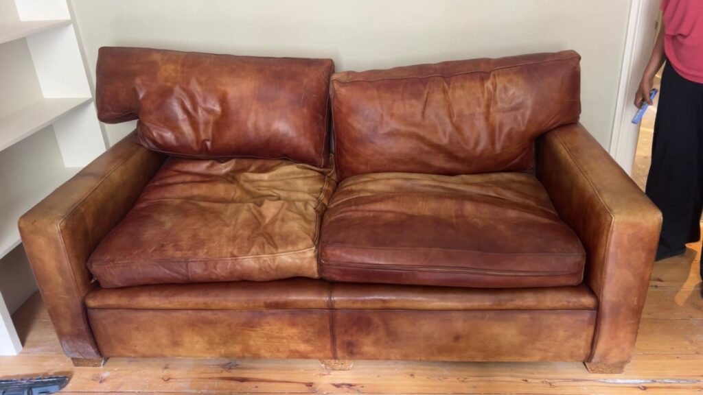 Firstly the sofa is cleaned. This is done using leather cleaner and a lint free cloth.